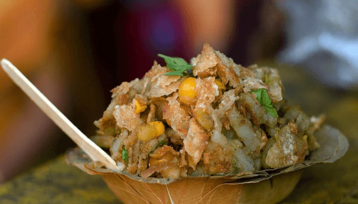 A fast and simple munchy, Jhalmuri is an appealing street food that can be discovered in every nook of the city. The treat is a tossed-up mix of puffed rice, namkeen, peanuts, coriander, onions, tomatoes, spices, chilies, and more.